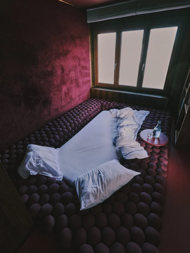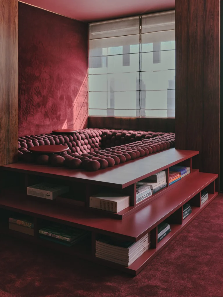 Iar la Bruxelles, au prezentat transformarea unui dormitor existent într-un spațiu pentru socializare cu prietenii, ce poate funcționa și ca dormitor pentru oaspeți, sau ca o canapea extensibilă căptușită, cu rafturi de cărți încorporate. Proiectul prezintă bile tapițate într-o nuanță de roșu intens ce completează pereții catifelați și mobilierul existent.