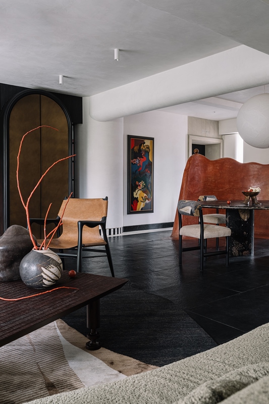 Apartamentul nu este doar o reședință – este un „sanctuar” care invita la pauză, reflecție și admirație profundă a formelor, texturii și materialelor.