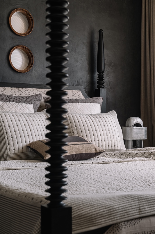 Paleta de culori este restrânsă, lăsând accentul pe textură, formă și lumină. Obiectele de decor monocrome și personalizate împreună cu lumina caldă a soarelui filtrată de perdelele de in conferă locuinței o atmosferă calmă de litoral.
