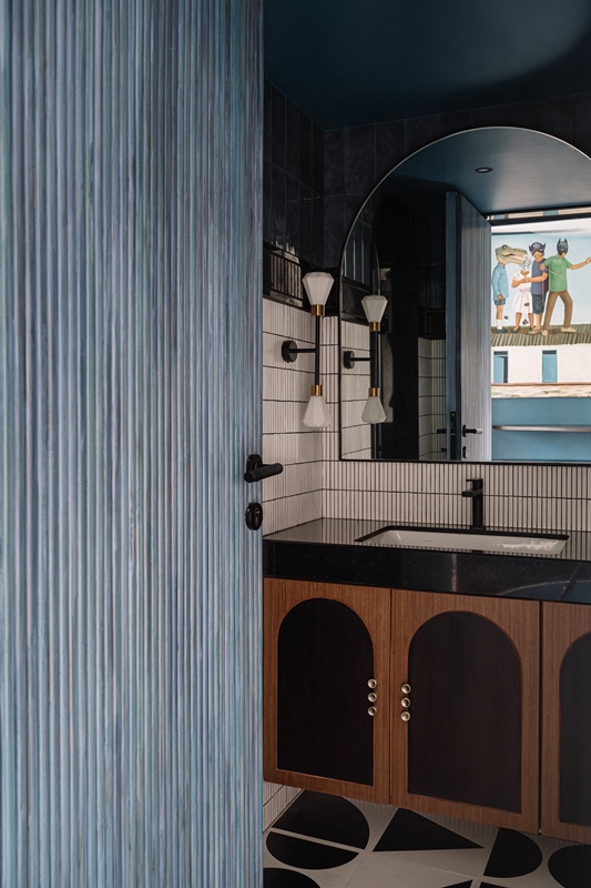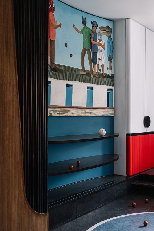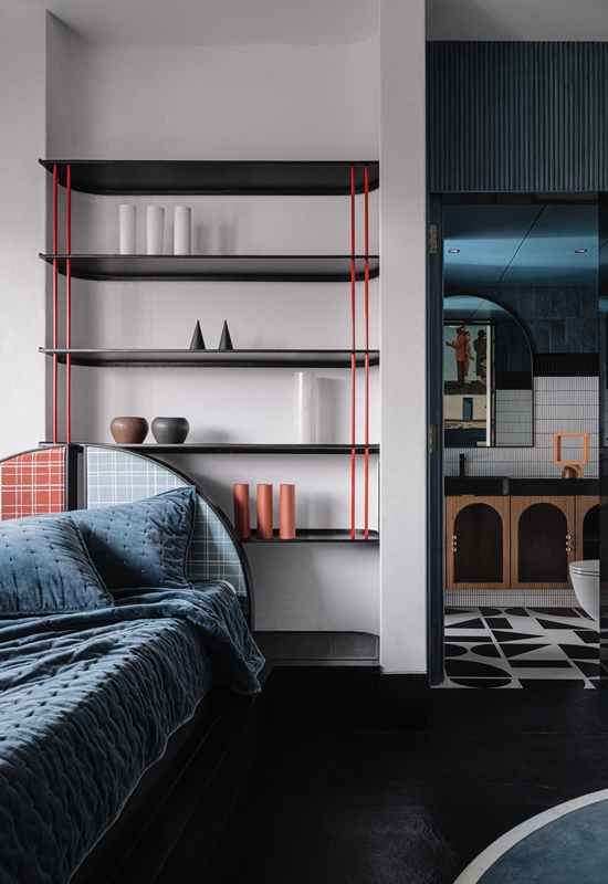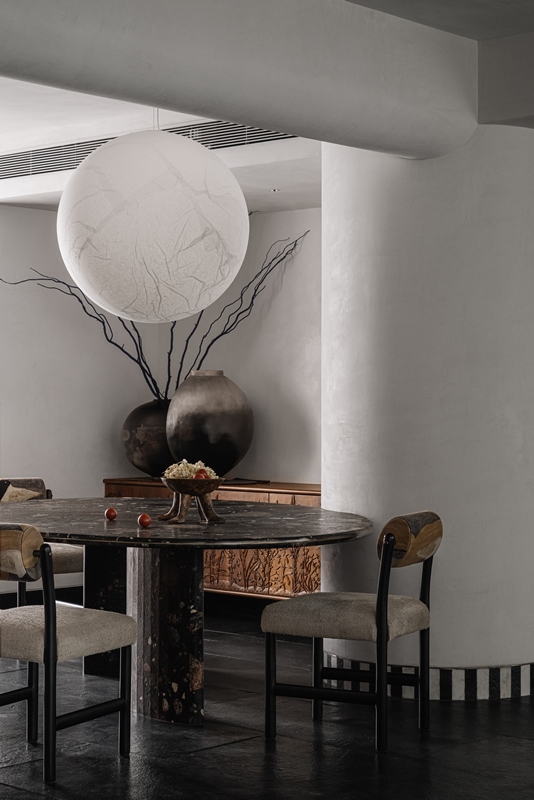 Camerele apartamentului dezvăluie, una după alta, elemente de artă cu aspect funcțional: o cameră media cu tavan pictat manual și o lampă Totem maiestuoasă de Klove, dormitor matrimonial în stil Zen decorat cu tapete Ananbo și pardoseală din marmură și terrazzo, și o cameră pentru copii cu pardoseală IPS în stil jucăuș și pete de culoare inspirate de Bauhaus.