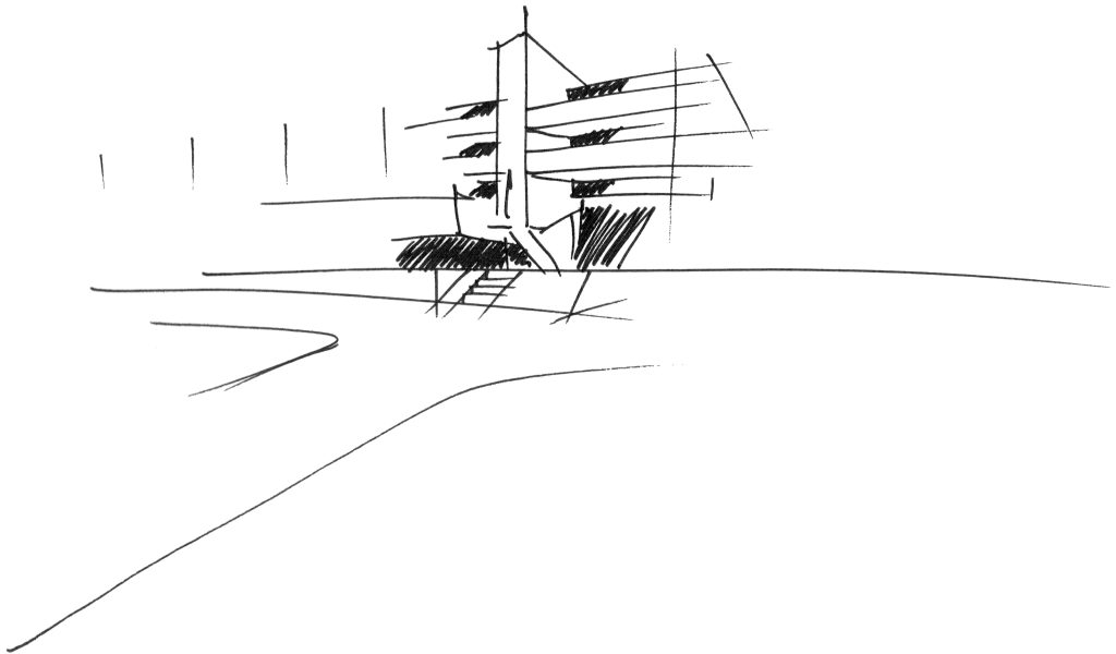 Arhitectura clădirii evită izolarea tipică a construcțiilor suburbane, mizând pe continuitate vizuală și funcțională cu împrejurimile.