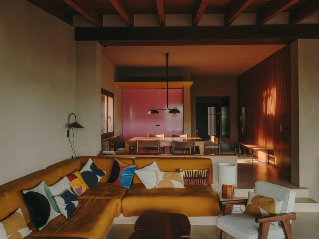 Designul este puternic inspirat de stilul arhitectului mexican Luis Barragán, folosind în toată casa accente vii de culoare: roz, galben și portocaliu.