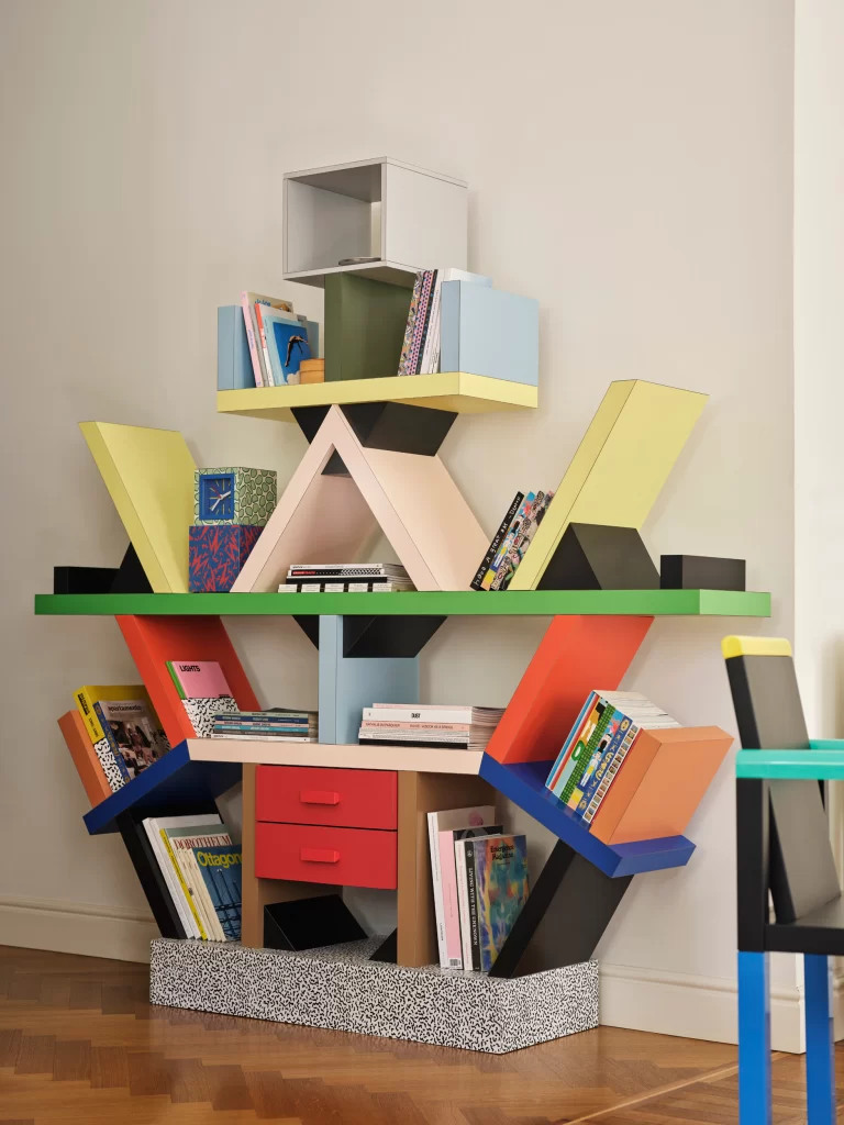 Casa a trecut printr-o adevărată revoluție: Carlton, capodopera lui Ettore Sottsass, domină spațiul. Deși are aspect sculptural, funcționează ca o bibliotecă. Aceasta devine o puntea între simetrie și libertatea de exprimare.