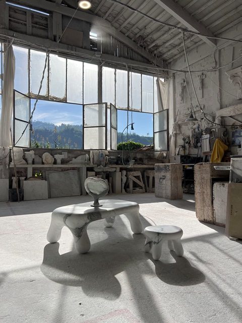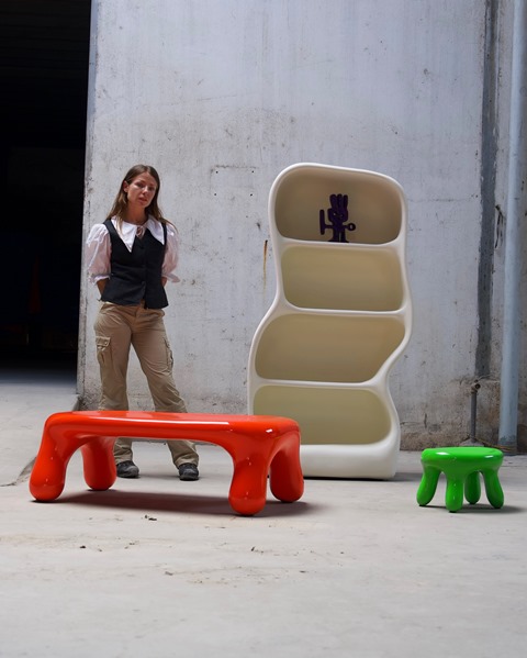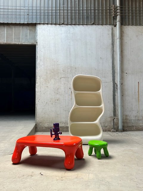 Colecția este inspirată din forme pietroase, dar fluide, vibrante, executate din fibră de sticlă și marmură – scaune, mese și alte piese sculpturale, care au aspect atât antic, cât și futurist.