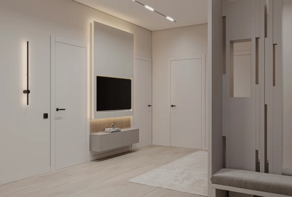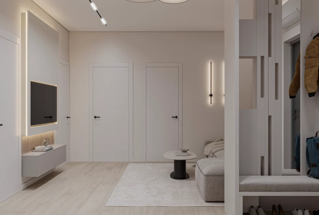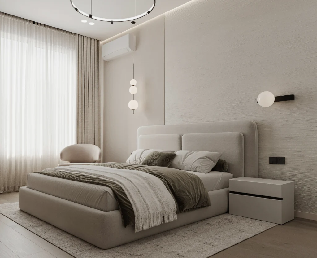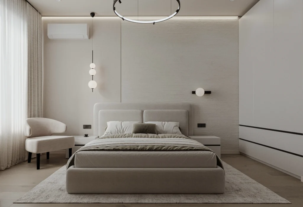 Stilul minimalist contemporan păstrează claritatea conceptului și coerența vizuală.