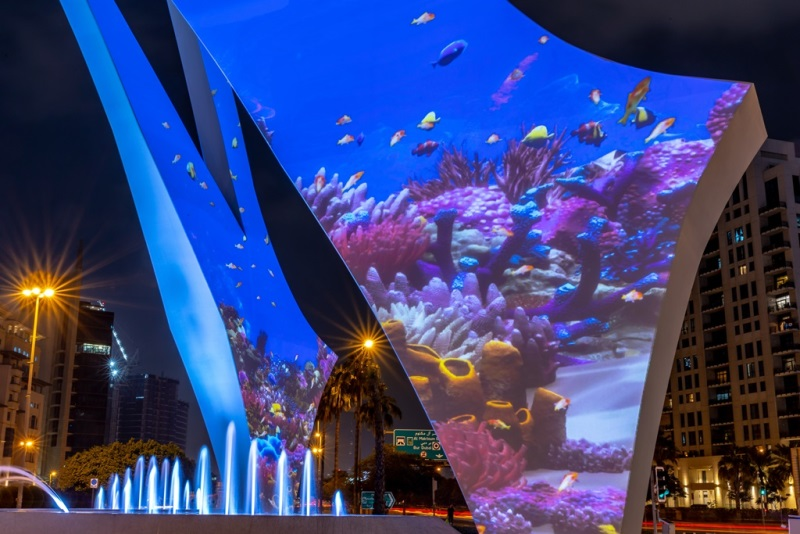 Proiectul a fost dezvoltat împreună cu Primăria orașului Dubai și Nuevo Design Studio, în cadrul inițiativei Art for Change. Turnul a creat un peisaj marin digital viu, cu recife de corali și viață de mare, receptiv la implicarea publicului.