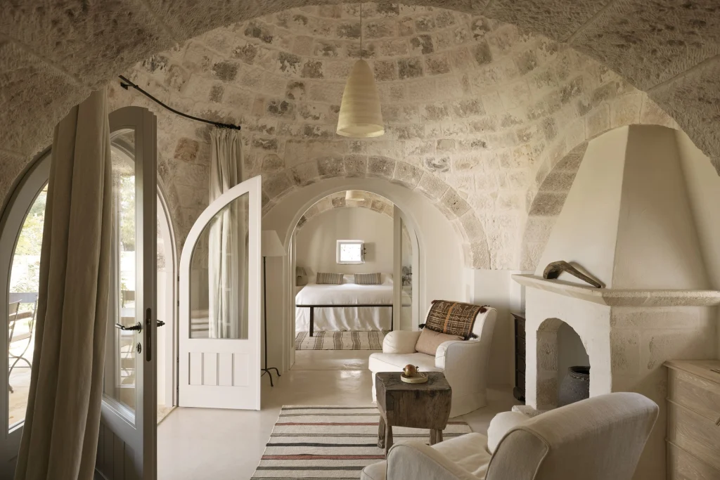 Zidurile de piatră, tavanele în boltă și interioarele în stil rustic-șic redau povestea secolelor trecute, în timp ce lucrul artizanilor locali ancorează designul în prezent.
