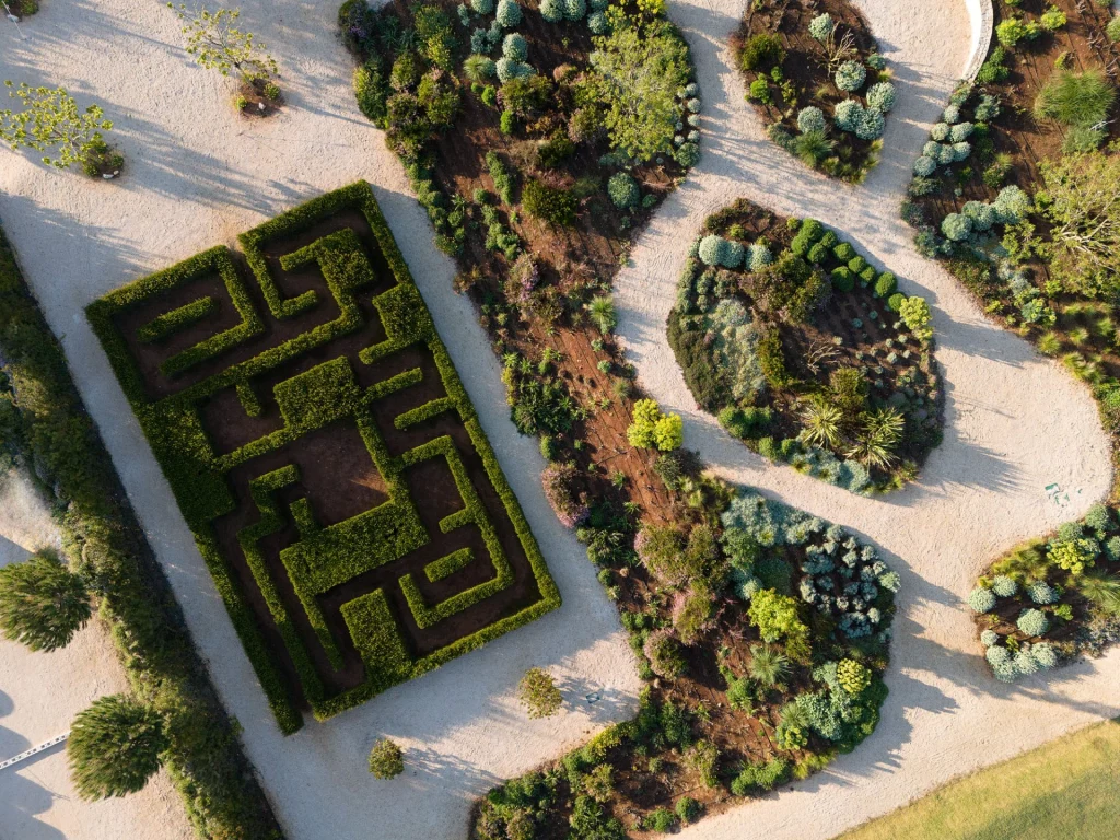 În exterior sunt mai multe curți interioare din piatră, grădini private și o terasă extinsă cu piscină, ce creează experiențe unice în aer liber.
