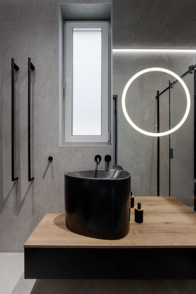 Proiectul a fost conceput într-un stil minimalist–modern cu accente industriale.