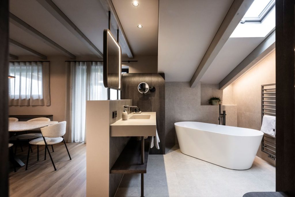 Apare un dialog subtil între nord și sud, între calmul alpin și luminozitatea mediteraneană, oferind oaspeților o experiență senzorială autentică.