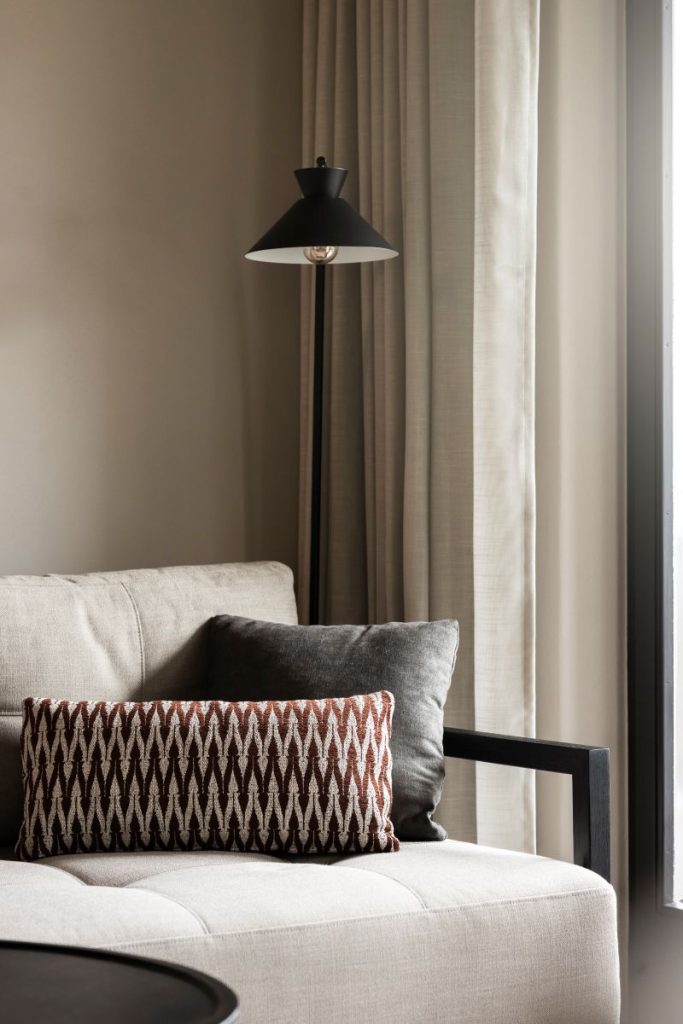 „Frumusețea proiectului se dezvăluie în detalii: un fotoliu bouclé care invită la o lectură liniștită, un paravan metalic perforat care oferă intimitate fără a închide spațiul și o iluminare blândă în primele ore ale dimineții. Fiecare colț oferă un moment de intimitate confortabilă și bunăstare personală”, explică Mara Jungmann, designer de interior.