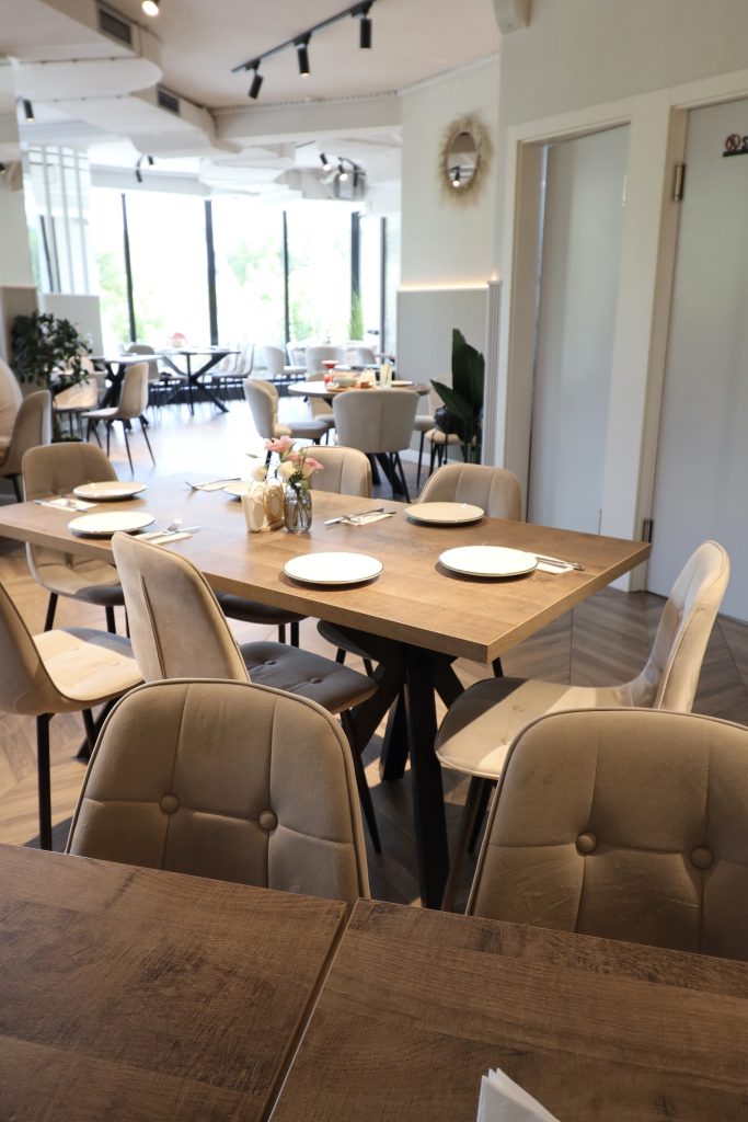 Spațiul tinde să ofere vizitatorilor ambianța vibrantă a unei cafenele de oraș cu bucătărie selectă, dar și ambianța de restaurant elegant pentru serile lungi și liniștite.