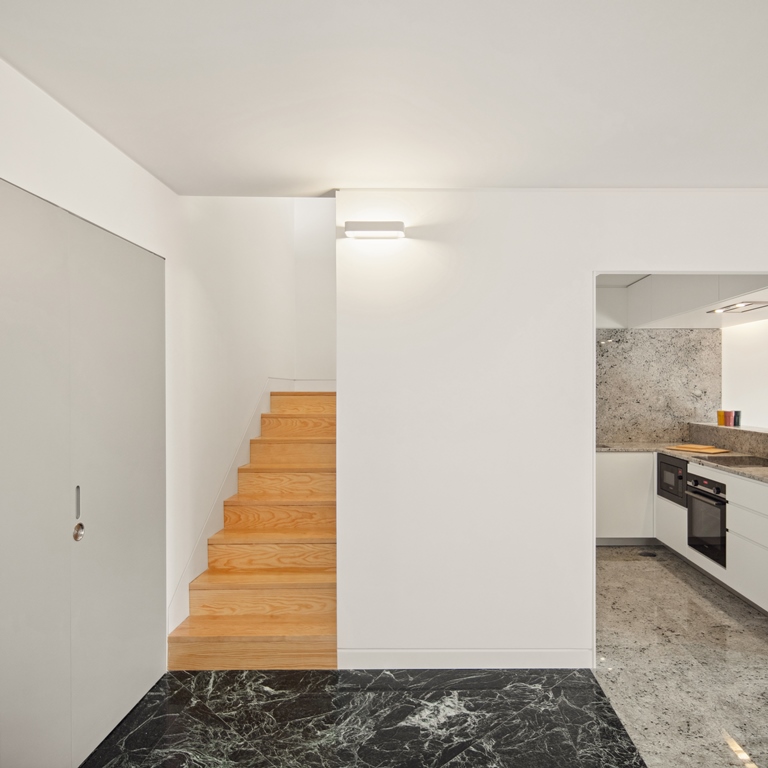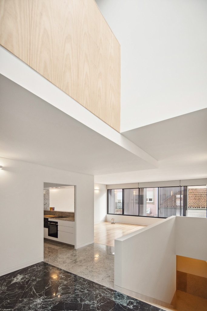 Casa Sá cuprinde două locuințe: un apartament compact, de închiriat, cu un dormitor la parter, care se deschide spre o terasă în spate printr-o suprafață largă vitrată; și reședința principală – între primul etaj și mansardă.