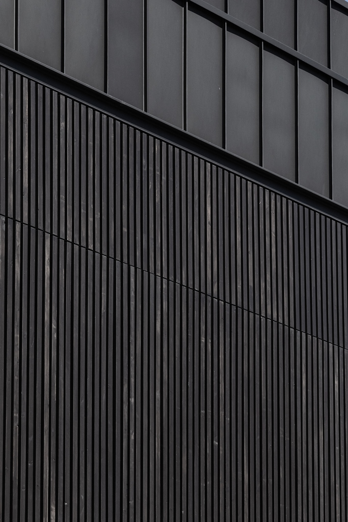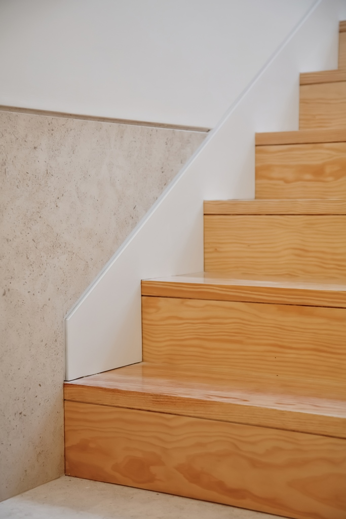 Calcarul este folosit la bază, iar parterul este acoperit de plăci ceramice, dialogând, în continuare, cu texturile și tehnicile clădirii-reper.