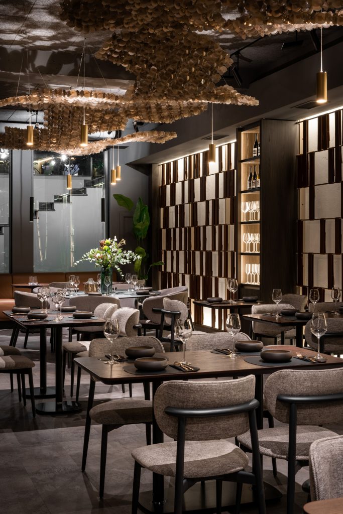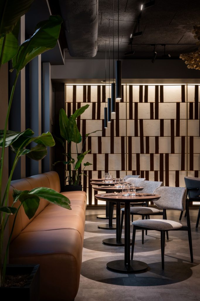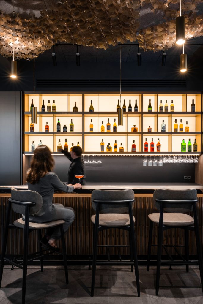 Proiectul de reamenajare a creat maxim confort într-un spațiu lipsit de lumină naturală și a integrat armonios fluxurile spațiale pentru mic dejun, dining casual și bar lounge.