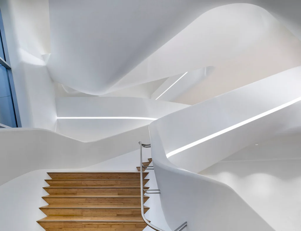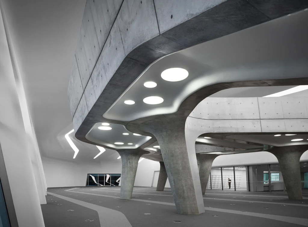 În timpul discursului său de acceptare a Premiului Pritzker, Zaha a menționat: „…una dintre preocupările mele actuale: dezvoltarea unui limbaj organic al arhitecturii, bazat pe aceste noi instrumente, care ne permit să integrăm forme extrem de complexe într-un întreg fluid și fără întreruperi” – indicând la aspectul continuu, fluxul și dinamismul distinctiv care au definit designurile sale.